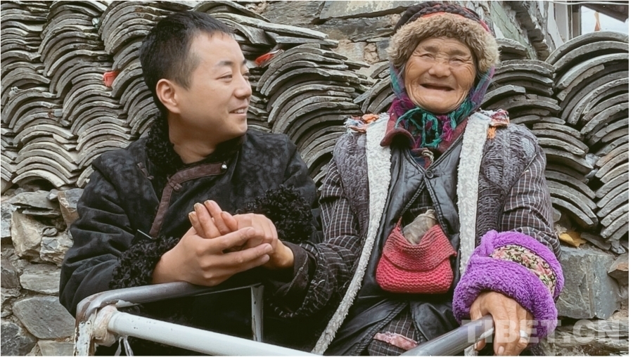 第二個老師是兩腿癱瘓的獨(dú)居藏族老人斯達(dá)木,是楊斐在第一次下鄉(xiāng)時遇到的。老人耐心教楊斐藏語,楊斐給老人帶去了輪椅、拐杖、紙尿褲等生活用品,兩人感情日漸深厚,他認(rèn)斯達(dá)木老人當(dāng)了干媽。