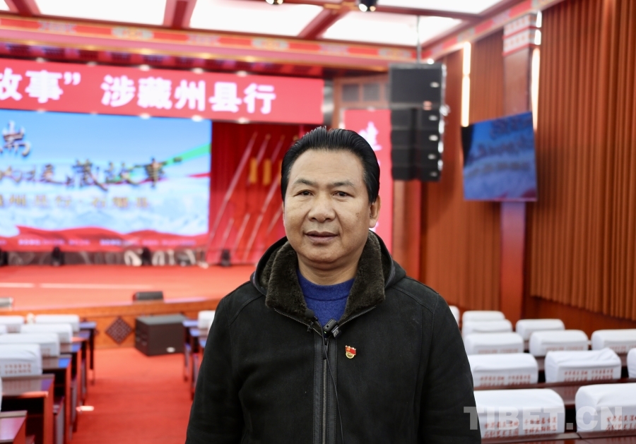 圖為石渠縣縣委常委、宣傳部部長(zhǎng)土登在接受記者采訪 攝影:龍真多吉