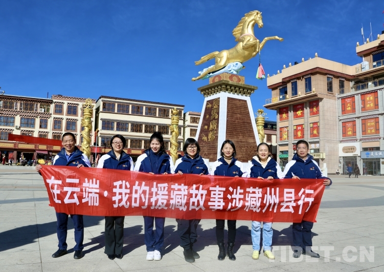 圖為宣講團(tuán)援藏干部代表在色達(dá)縣金馬廣場合影留念 攝影:龍真多吉