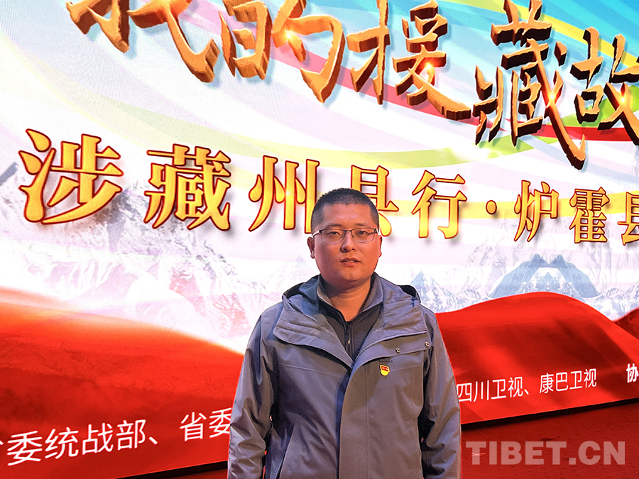 圖為爐霍縣教體局副局長、成都市鹽道街中學(xué)教師董亞偉接受記者采訪 攝影:龍真多吉