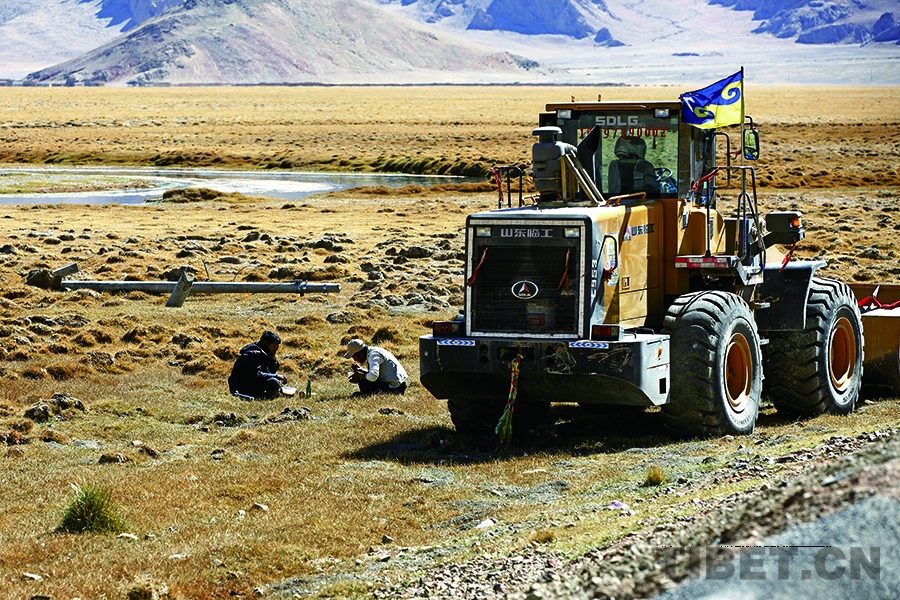 我們沿著349國(guó)道環(huán)湖而行,在白地村路段遇到赤列、索朗多吉、白瑪赤列、巴桑頓珠、次仁倉姆和嘎桑正在忙碌著。