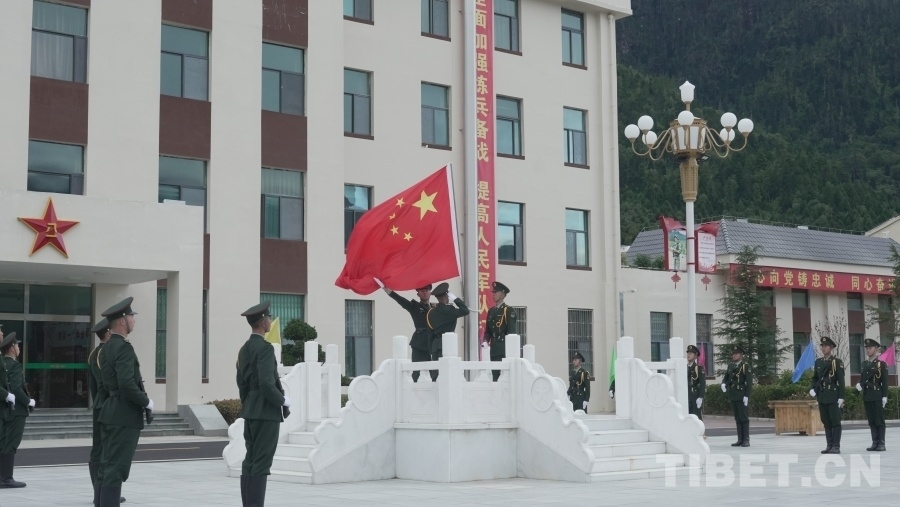 圖為西藏軍區(qū)某團元旦升國旗儀式現(xiàn)場
