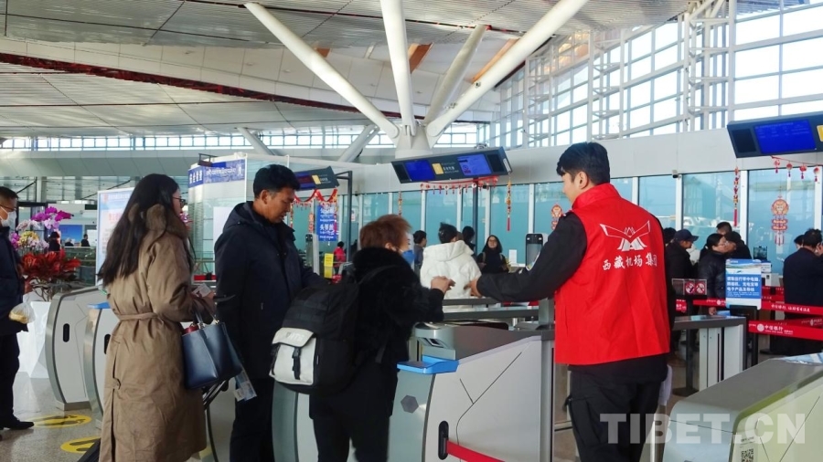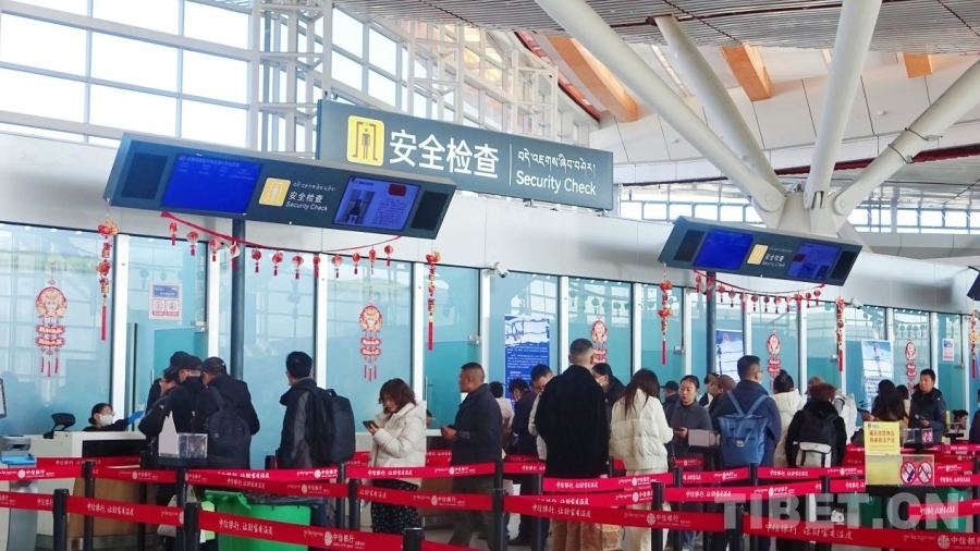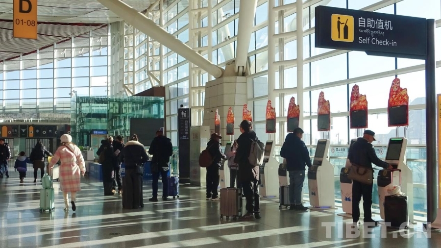 圖為春運首日的拉薩貢嘎國際機(jī)場