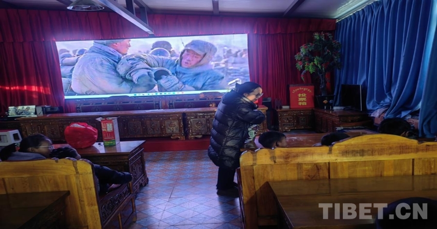 中國(guó)西藏網(wǎng)訊 “等我長(zhǎng)大了,我也要保衛(wèi)祖國(guó)?!薄拔蚁胂衲倪敢粯訁柡?。”近日,在西藏自治區(qū)日喀則市定結(jié)縣江嘎鎮(zhèn)芒熱村,駐村工作隊(duì)的年青人們?yōu)榇謇锇仓命c(diǎn)的小朋友們播放了《八佰》和《哪吒之魔童降世》兩部電影,小朋友們看得津津有味。