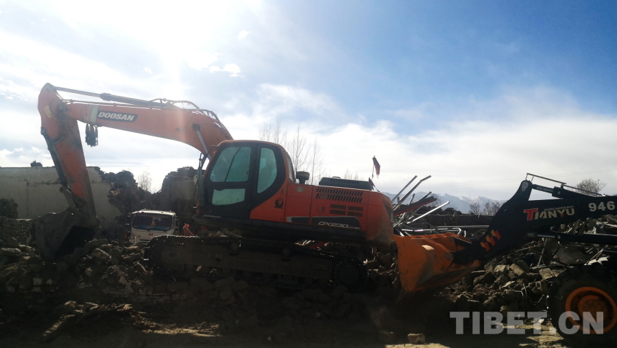 圖為地震重災(zāi)區(qū)西藏自治區(qū)日喀則市定日縣長(zhǎng)所鄉(xiāng)除險(xiǎn)現(xiàn)場(chǎng),畫(huà)面中右側(cè)的危房、建筑已完成除險(xiǎn) 攝影:劉莉