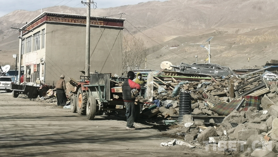 圖為地震重災(zāi)區(qū)西藏自治區(qū)日喀則市定日縣長(zhǎng)所鄉(xiāng)除險(xiǎn)現(xiàn)場(chǎng),村民在已完成除險(xiǎn)的地方搜集尚可再次利用的物資,旁邊未受到嚴(yán)重?fù)p壞的房屋被保留下來(lái) 攝影:劉莉