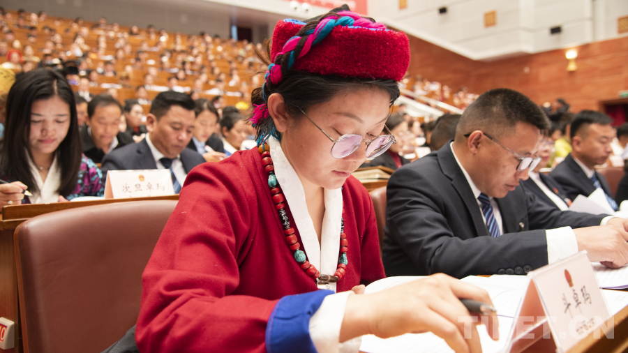圖為西藏自治區(qū)人大代表聆聽西藏自治區(qū)高級(jí)人民法院工作報(bào)告 攝影:趙振宇