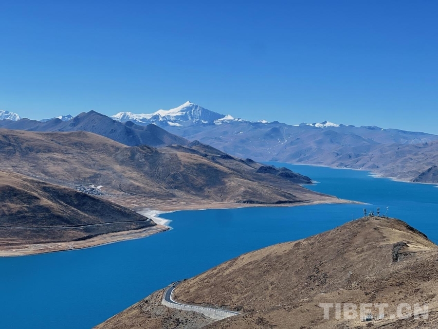 圖為湛藍的羊卓雍錯和乃欽康桑雪山交相輝映,構(gòu)成一幅美麗動人的畫卷。攝影:德吉卓瑪