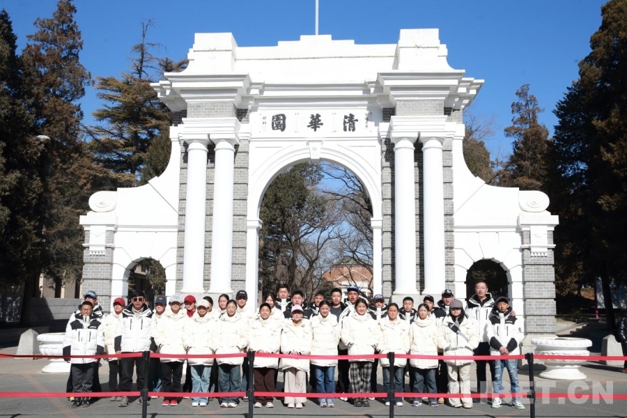 圖為2025年2月13日,來自西藏阿里地區(qū)邊境縣的31名師生在清華大學二校門合影留念 攝影:陳衛(wèi)國
