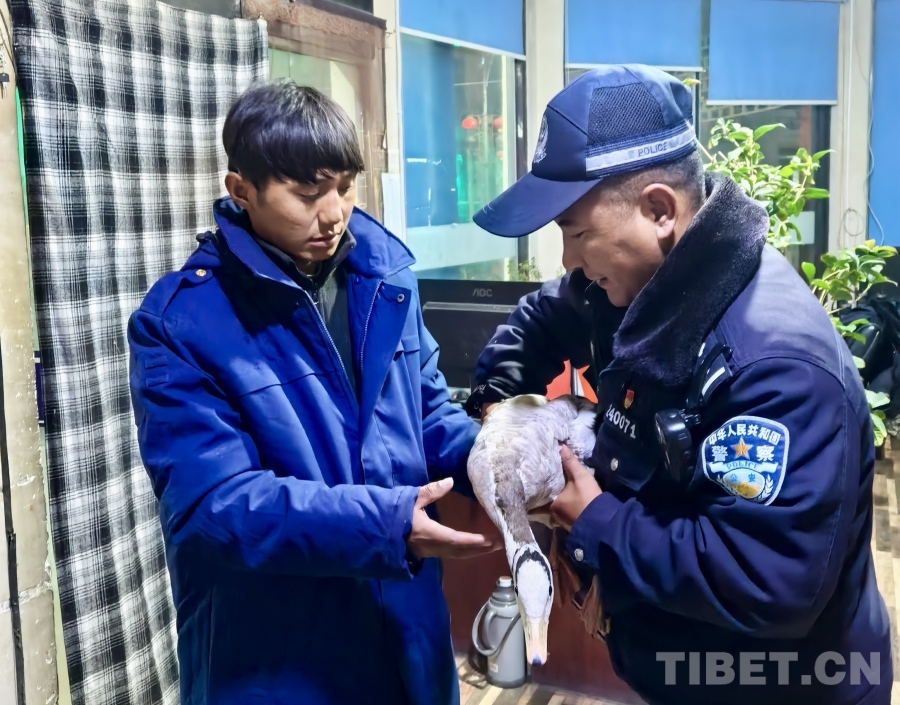 中國(guó)西藏網(wǎng)訊 2月16日下午,西藏日喀則仁布縣公安局強(qiáng)欽街便民警務(wù)站民輔警在開展巡邏時(shí),在路邊人行道上發(fā)現(xiàn)一只受傷被困的“大鴨子”,疑似野生保護(hù)動(dòng)物。