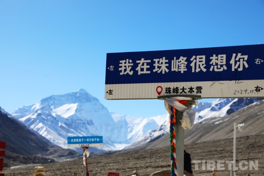 在珠峰大本營,看萬仞雪白聳入無暇湛藍(lán)。