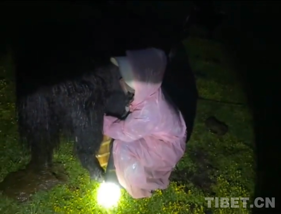 到了牛圈里,我發(fā)現(xiàn)大部分的牦牛都把腦袋斜靠在自己的肚子旁,閉著眼睛睡覺呢。我想很多人都沒見過(guò)牦牛睡覺的畫面吧?它們睡覺不是站著,而是躺下后前后腿全部收緊,把自己裹成一團(tuán),頭不是往前伸著,而是斜著貼緊自己的身體。過(guò)了一會(huì)兒,似乎是小牛犢們意識(shí)到了自己馬上就可以喝到媽媽的奶了,牛圈里開始傳來(lái)此起彼伏的叫聲;另一邊的牛媽媽們也開始作出回應(yīng)。雖然在我聽來(lái)都是同一種叫聲,但在它們那兒似乎有著完全不一樣的意義。這是屬于它們自己的“加密語(yǔ)”。就這樣,在一聲聲“哞——哞——”的叫聲中,我們開始了今天的工作。