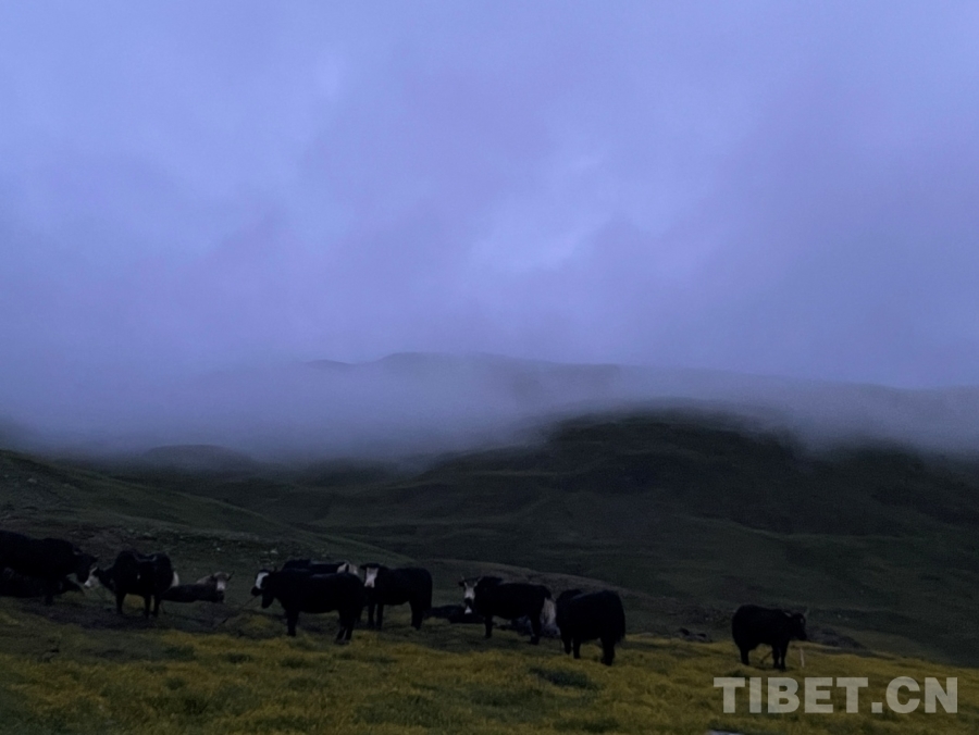 過(guò)了一會(huì)兒,天邊漸漸卷起了一個(gè)白邊,然后越來(lái)越大。后來(lái),遠(yuǎn)處的山、河、帳篷、牛羊都逐漸清晰了。這時(shí),我們的工作也接近尾聲。一回頭,看到我家?guī)づ耥數(shù)臒焽枥锷鹆搜U裊炊煙,我知道,爸爸已經(jīng)準(zhǔn)備好了早餐,等著我們回家了。(中國(guó)西藏網(wǎng) 實(shí)習(xí)生/扎西央措)