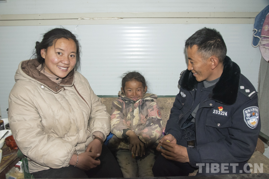 “我的小兒子扎西羅布性格比較內(nèi)向,現(xiàn)在正在讀小學四年級,我擔心他到縣里讀書會不適應(yīng)?!卑⒓迅裆A訴著自己的擔心,村干部和民警耐心地向她介紹情況。