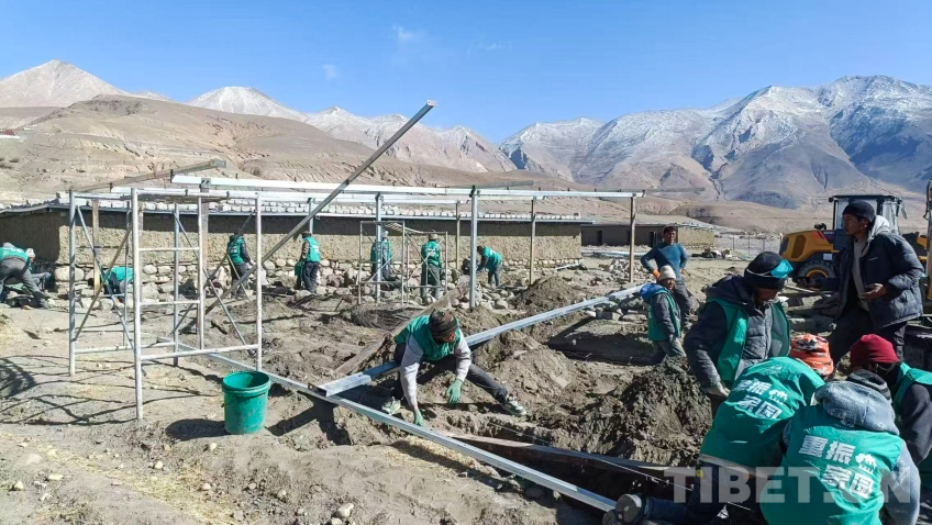 圖為定日縣長(zhǎng)所鄉(xiāng)嘎旦村群眾通過(guò)以工代賑方式參與村集體畜圈的修建 圖片由受訪者提供