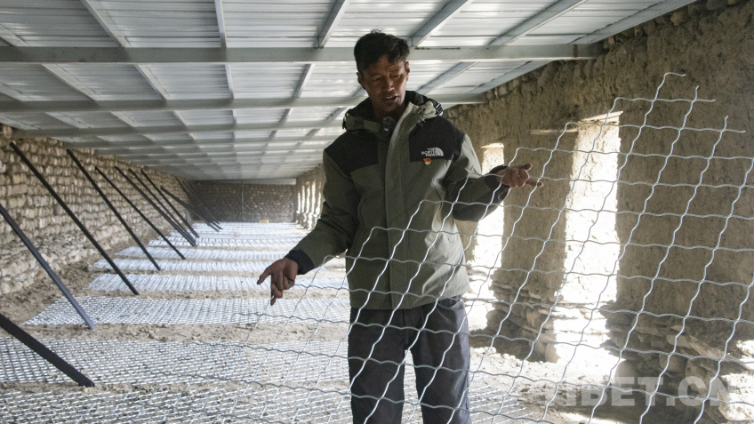 圖為定日縣長(zhǎng)所鄉(xiāng)嘎旦村村委會(huì)主任頓珠向記者介紹村集體畜圈的規(guī)劃 攝影:趙振宇