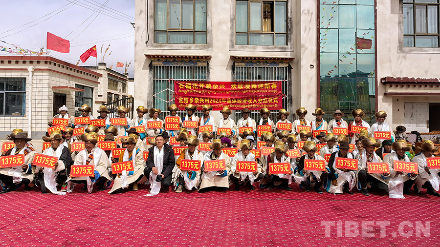 圖為定結縣定結鄉(xiāng)雜興村集體經(jīng)濟收入分紅儀式現(xiàn)場