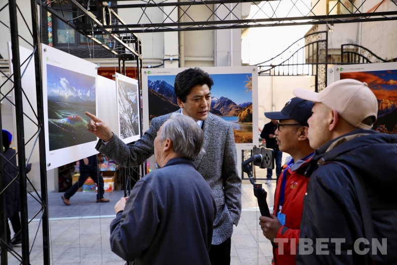 圖為甘孜州政協(xié)副主席、州文化廣播電視和旅游局黨組書記、局長(zhǎng)劉洪介紹攝影作品 攝影:龍真多吉