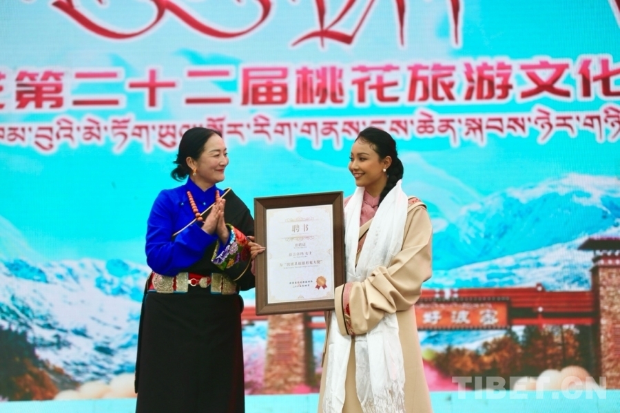 圖為網絡達人德吉卓瑪被授予波密縣旅游形象大使證書