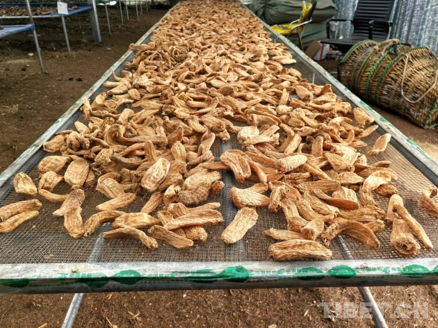 圖為紅太陽科技示范家庭農(nóng)場(chǎng)大棚里晾曬的天麻 攝影:王淑