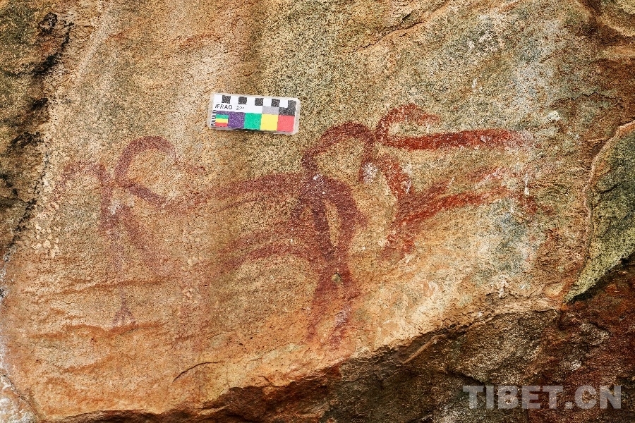 甘孜南路的涂繪類巖畫也揭示出兩個(gè)現(xiàn)象:一是舊石器人群在青藏高原消失的時(shí)間非常晚;二是從巖畫分布來推斷,這群人是從低海拔地區(qū)遷徙上來的,這意味著甘孜地區(qū)人類交流活動(dòng)可追溯到史前的舊石器時(shí)代。
