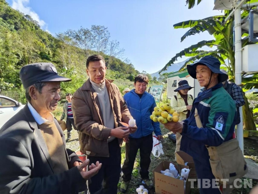 “墨脫雨水這么多,更需要避雨栽培,把果樹上面遮一下,品質更好,病蟲害更少,甜度也會高一兩個點?!痹谌ネ屡d村果園的路上,張澤煌和司機一談起目前枇杷的技術痛點,便滔滔不絕。他認為,白肉枇杷要成為致富果,技術帶動產業(yè)發(fā)展是關鍵。