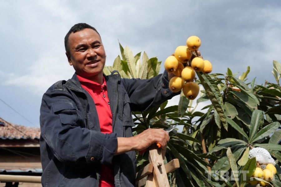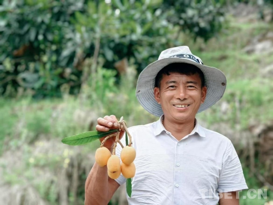圖為西藏林芝市墨脫縣德興村村民旺扎展示今年剛摘下的枇杷(2025年4月攝) 供圖:墨脫縣農業(yè)農村局
