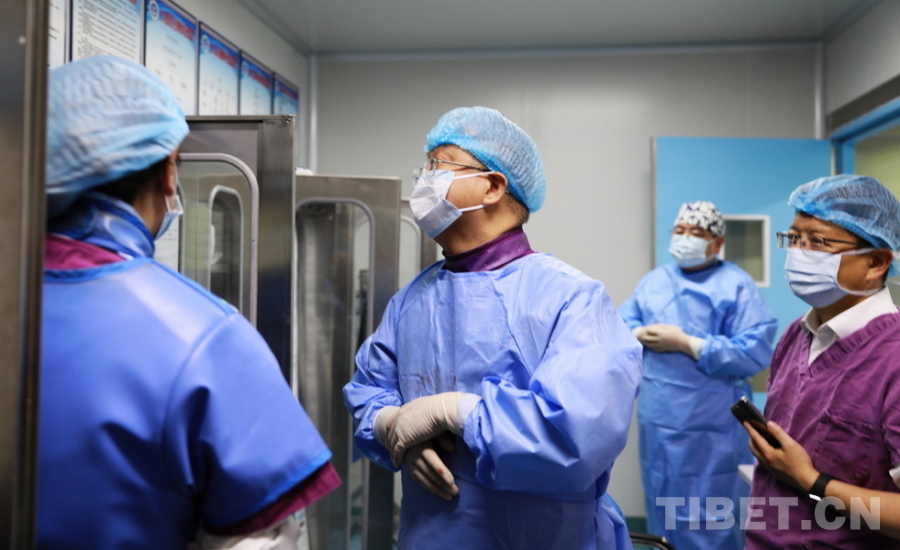 圖為首都醫(yī)科大學(xué)附屬北京安貞醫(yī)院心內(nèi)科副主任、主任醫(yī)師陰赪茜(中)趕赴阿壩州人民醫(yī)院手術(shù)救治急性心?;颊撸g(shù)前查看有關(guān)手術(shù)器材 攝影:劉莉