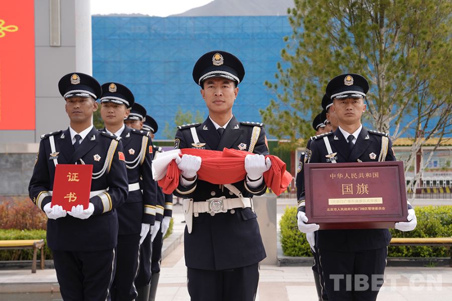 儀式最后,國旗護衛(wèi)隊護送國旗至昌都市革命歷史博物館,永久陳列于“紀(jì)念昌都戰(zhàn)役主題展覽”專題館內(nèi)。