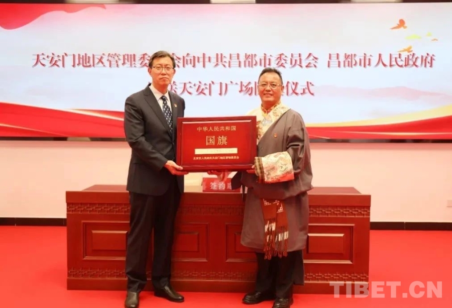 這面由北京市人民政府天安門地區(qū)管理委員會向昌都市委、市政府贈送(編號2020—0094)的天安門廣場國旗,在西藏自治區(qū)成立60周年和昌都解放75周年前夕,從首都北京來到了邊疆,極大激發(fā)了昌都全市上下的愛國榮譽感和強國使命感,激勵各族干部群眾砥礪前行、感恩奮進。(中國西藏網(wǎng) 記者/王茜 陳衛(wèi)國)