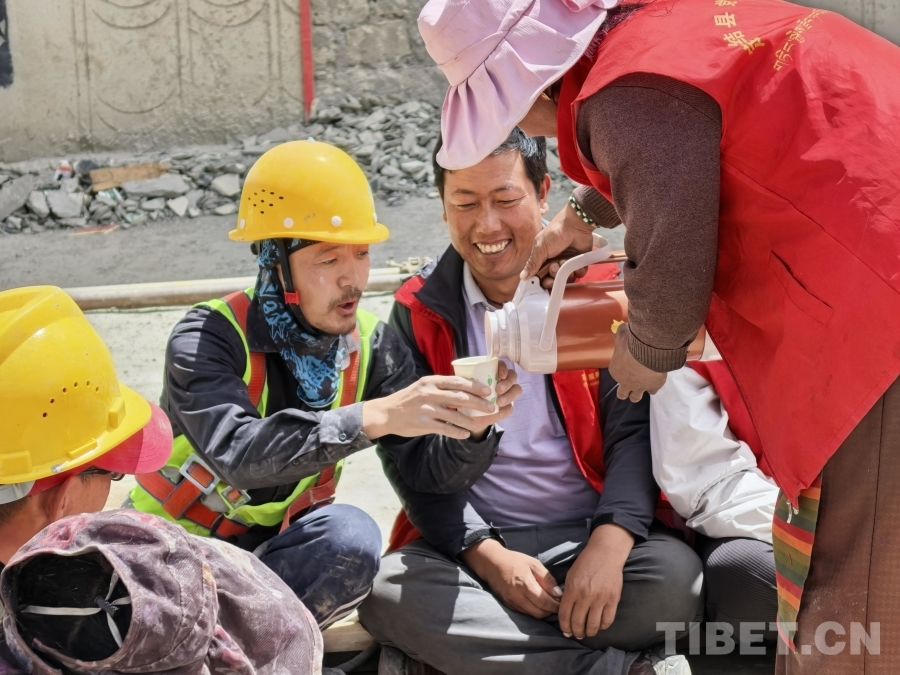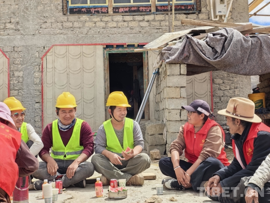 負(fù)責(zé)白瑪村重建的四標(biāo)段施工隊,隊員來自五湖四海。來自山西五臺山的建筑工人張計平喝完酥油茶感慨道:“這茶咸中帶甜,干完活喝下去特別解乏提勁!老鄉(xiāng)們太熱情淳樸了,讓我們干活都更有勁兒!”一旁的安全員陳灝吃著西瓜補(bǔ)充道:“我們一定爭取早日讓鄉(xiāng)親們住進(jìn)安全舒適的新家!”