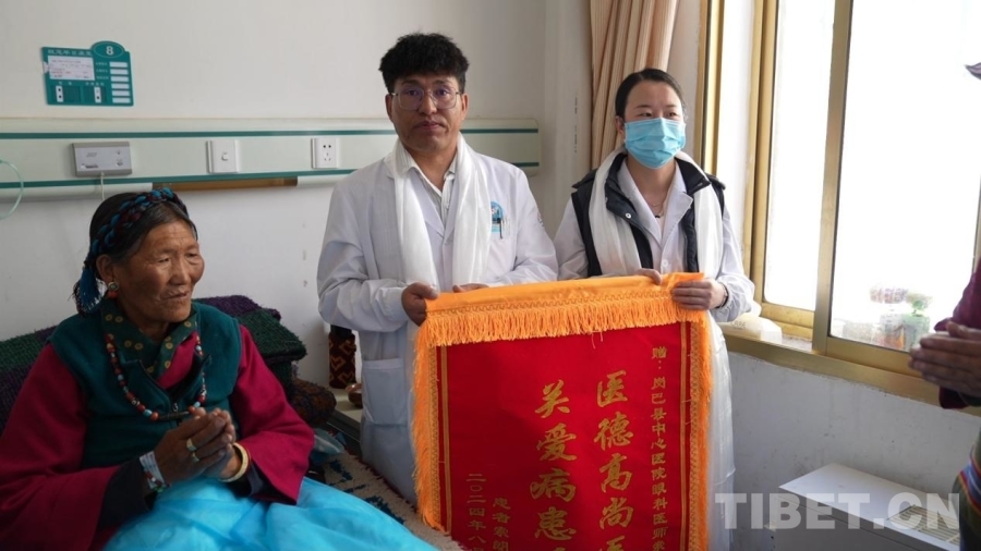 中國(guó)西藏網(wǎng)訊 近日,西藏日喀則市崗巴縣中心醫(yī)院眼科收到了定結(jié)縣央珍的錦旗。因長(zhǎng)期被視力模糊問題困擾,央珍慕名來到崗巴縣中心醫(yī)院眼科治療?!笆且晃挥H戚推薦我來的,她之前在這里做的眼科手術(shù)效果非常好?!比缃褚暳净謴?fù)正常的央珍感激地說道。