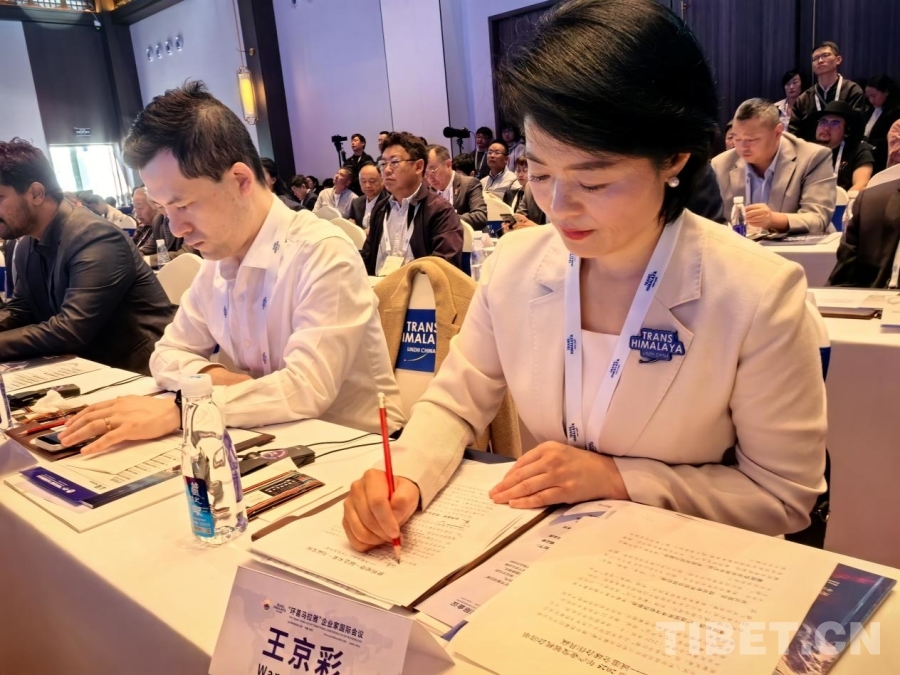 6月27日,“環(huán)喜馬拉雅”企業(yè)家國際會議在西藏林芝舉行。圖為現(xiàn)場簽約儀式 攝影:王淑