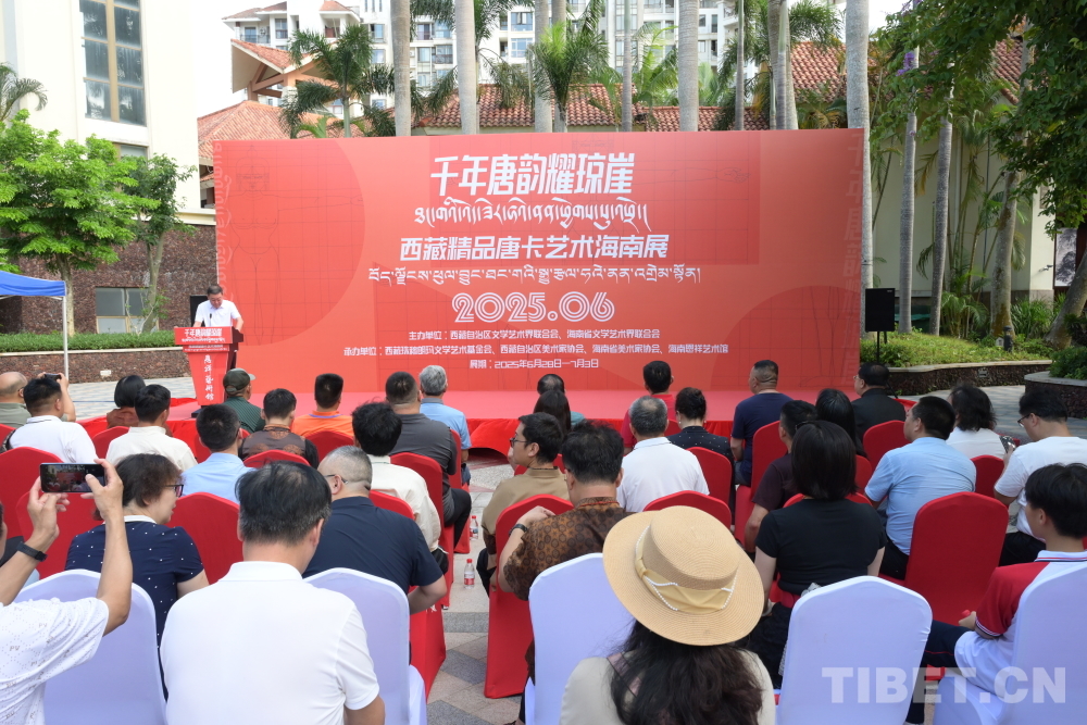 中國西藏網(wǎng)訊 為慶祝西藏自治區(qū)成立60周年,進一步深化西藏與海南兩地文藝界的交往交流交融,6月28日,由西藏自治區(qū)文聯(lián)、海南省文聯(lián)主辦,西藏自治區(qū)美術(shù)家協(xié)會、海南省美術(shù)家協(xié)會及西藏珠穆朗瑪文學(xué)藝術(shù)基金會共同承辦的“千年唐韻耀瓊崖——西藏精品唐卡藝術(shù)海南展”在海南開幕。
