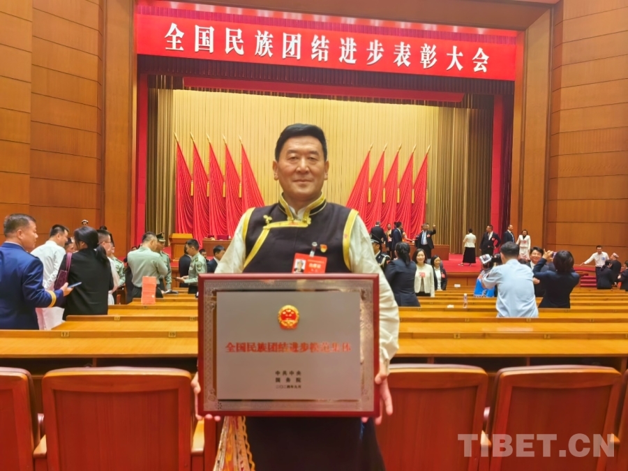 圖為邊巴在全國民族團結進步表彰大會現場 受訪者供圖
