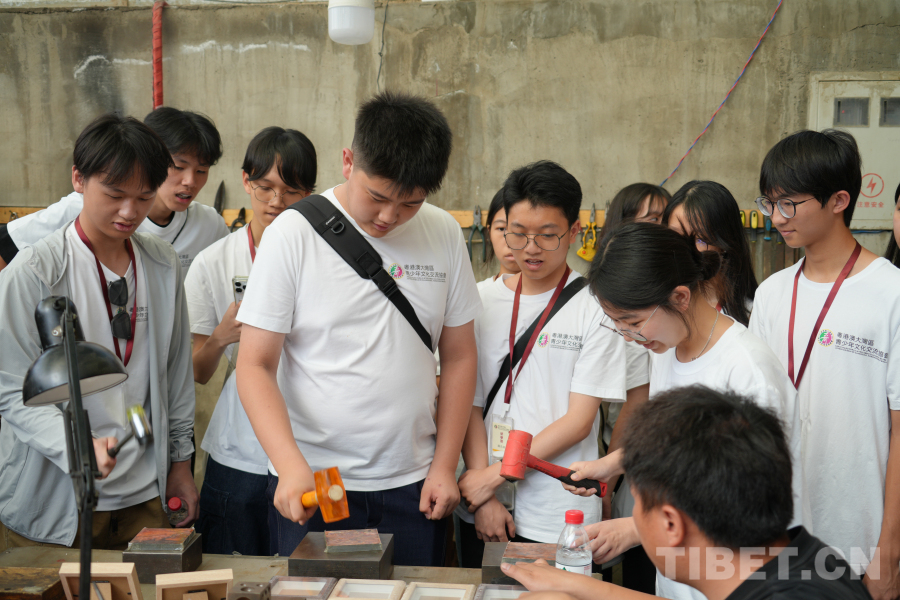 中國西藏網訊 7月17日,2025澳門青少年青海研學團的同學們走進位于青海省西寧市湟中區(qū)魯沙爾鎮(zhèn)的陽坡銀銅器加工產業(yè)園,在一錘一鏨中感受傳統技藝的魅力。