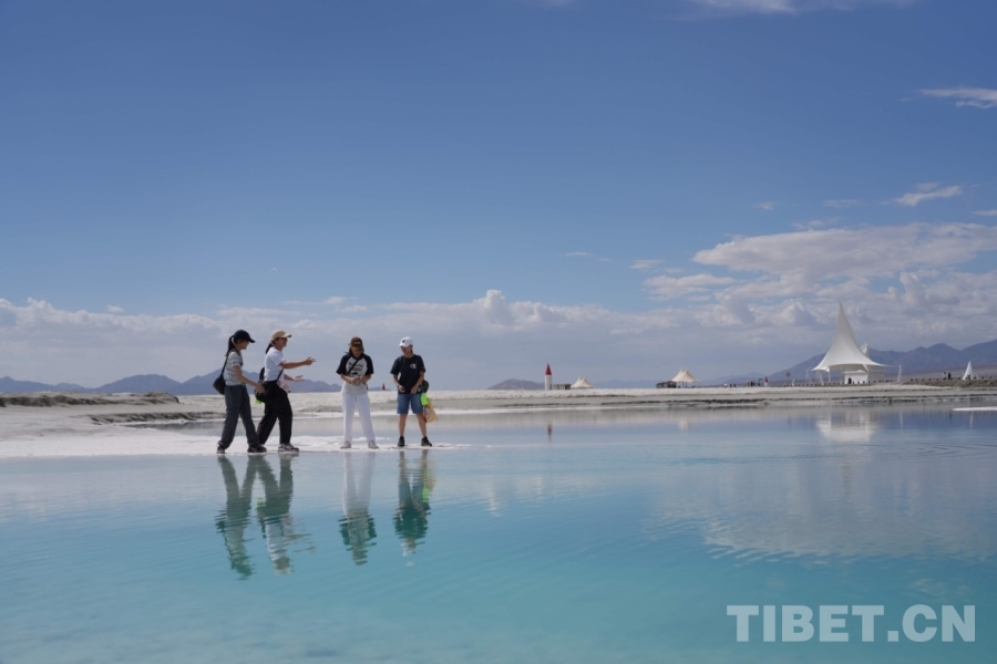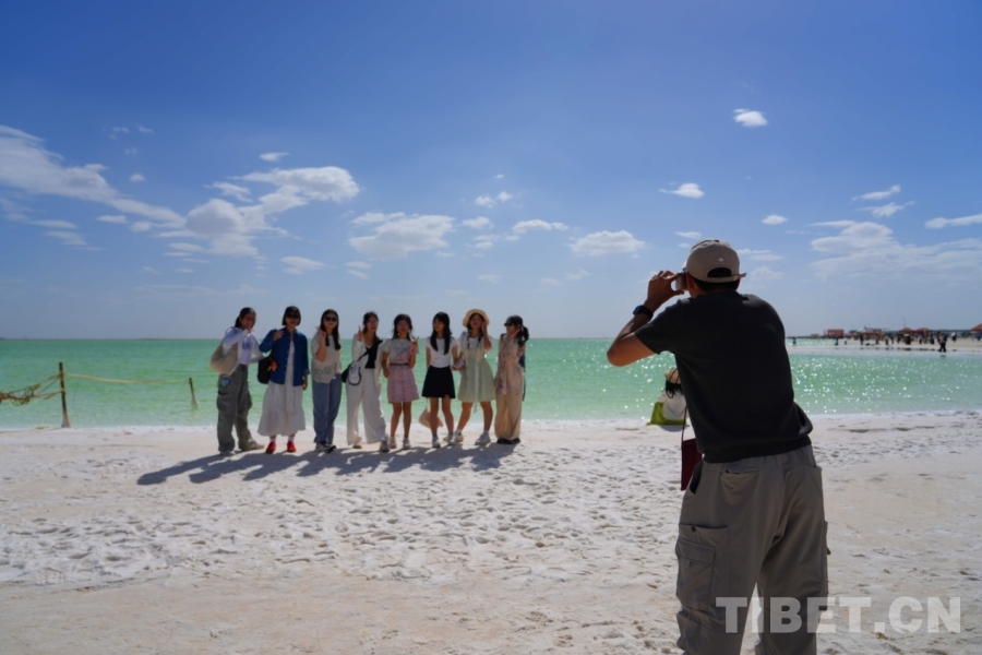 在海西蒙古族藏族自治州格爾木市,海拔2670米的察爾汗鹽湖,翠綠之美令人震撼,風起波動,湖面如碎鉆鋪就的星河;天然形成的鹽花形態(tài)各異宛如珊瑚叢生,在陽光下,閃耀著璀璨的光芒;浮在鹵水上的“萬丈鹽橋”延伸至天際,橫跨湖面,還有周邊的現(xiàn)代化采鹽船,輸鹵管道,車來車往,工業(yè)設施與自然景觀形成強烈對比。來自妙法寺劉金龍中學三位女生欣賞著美景,也紛紛討論這次令人驚嘆的“自然課堂”。鐘澄情同學不自禁感慨:“這里跟網(wǎng)上宣傳的一樣美!就像是上帝打翻的蘋果汁?!痹袂缤瑢W驚嘆道:“曾經(jīng)我只聽說過茶卡鹽湖,來到這里才知道察爾汗鹽湖是中國最大、世界第二大的鹽湖,面積相當于56個茶卡鹽湖,鹽儲量可以讓全球80億人吃上兩千年。”而許馨月同學更加震撼這里工業(yè)與自然相互交融的獨特魅力,直呼這是一座真正的“寶庫”!