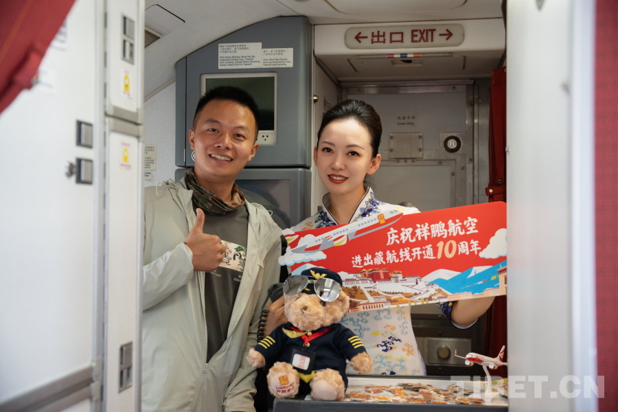 在當(dāng)天從喀什飛往阿里的航班上,祥鵬航空策劃開展了主題活動(dòng),慶祝航線開通10周年以及西藏自治區(qū)成立60周年。搭乘航班的每位旅客均收到了潔白的哈達(dá);有獎(jiǎng)問答環(huán)節(jié)氣氛熱烈,客艙內(nèi)笑聲與掌聲此起彼伏;旅客分享的自己與高原的故事,更令不少人動(dòng)容。航班在祝福、歡樂與感動(dòng)中飛向雪域高原。