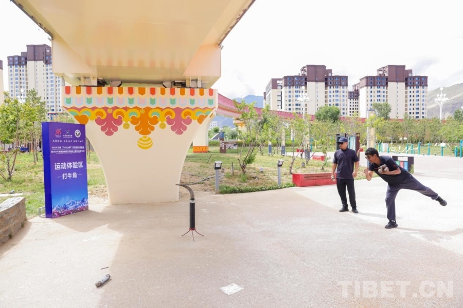 圖為西藏傳統(tǒng)體育運動項目打牛角體驗區(qū)