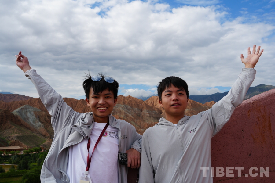 圖為范頌言(左)和朋友在貴德國(guó)家地質(zhì)公園 攝影:鄒慧