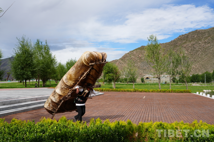 牛皮船每條重七十到八十斤,要背著這樣的重量跳舞是很不容易的。但是拉巴次仁說,如果表演的人都不享受這個過程,不熱愛這項藝術(shù),舞蹈也就失去了它的韻味。一次他們?nèi)ダ_演出,舞蹈隊伍要從宇拓路的一端背著牛皮船一邊表演一邊前進(jìn),直到另一端結(jié)束,近一千米的距離,隊員們都累得滿頭大汗,但是大家都咬牙堅持了下來。