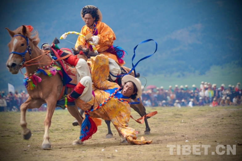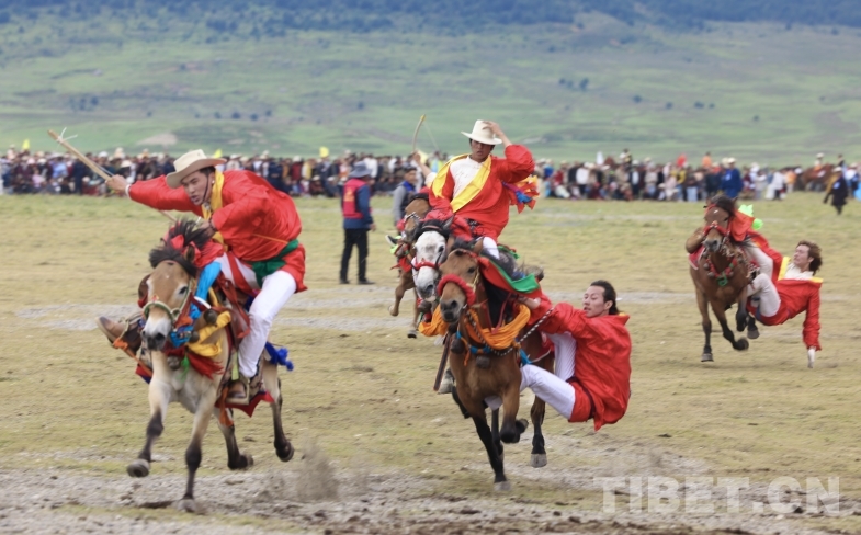 此外,來自奔戈鄉(xiāng)、禾尼鄉(xiāng)、曲登鄉(xiāng)和村戈鄉(xiāng)的馬隊還進(jìn)行了傳統(tǒng)馬術(shù)表演,馬背倒立、馬肚藏身、俯身拾哈達(dá)等精湛技藝,讓觀眾大飽眼福,充分感受到了理塘賽馬文化的魅力。