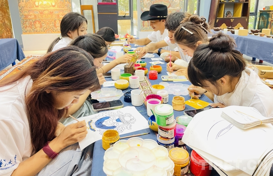 圖為重慶大學“格?;ā编l(xiāng)村振興調研實踐活動之藏式繪畫體驗 重慶大學供圖