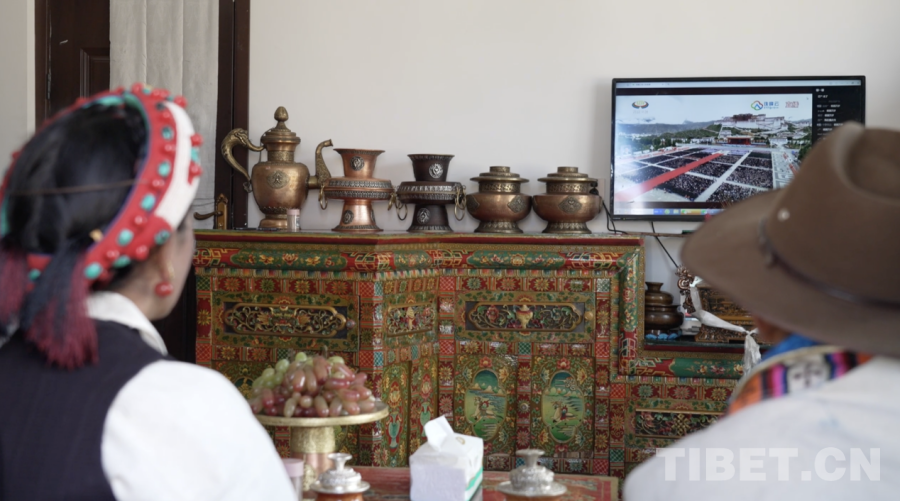 圖為嘎拉村村民觀看西藏自治區(qū)成立60周年慶祝大會 林芝市委宣傳部供圖