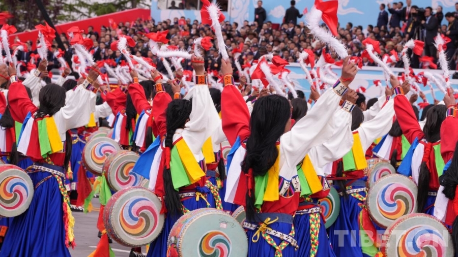 圖為慶祝大會現場吉祥喜慶的群眾游行 攝影:德吉卓瑪