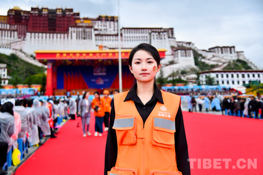 在西藏自治區(qū)成立60周年慶祝大會現(xiàn)場,一群身著橙色馬甲的群眾代表特別顯眼,他們是來自西藏交通系統(tǒng)各條戰(zhàn)線上的職工。他們能夠受邀來到布達拉宮廣場,見證西藏自治區(qū)成立60周年這一歷史性時刻,具有特別的意義。