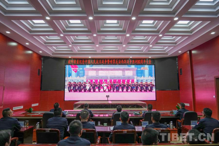 圖為日喀則邊境管理支隊(duì)機(jī)關(guān)組織民警收聽(tīng)收看紀(jì)念中國(guó)人民抗日戰(zhàn)爭(zhēng)暨世界反法西斯戰(zhàn)爭(zhēng)勝利80周年大會(huì) 攝影:葉軼