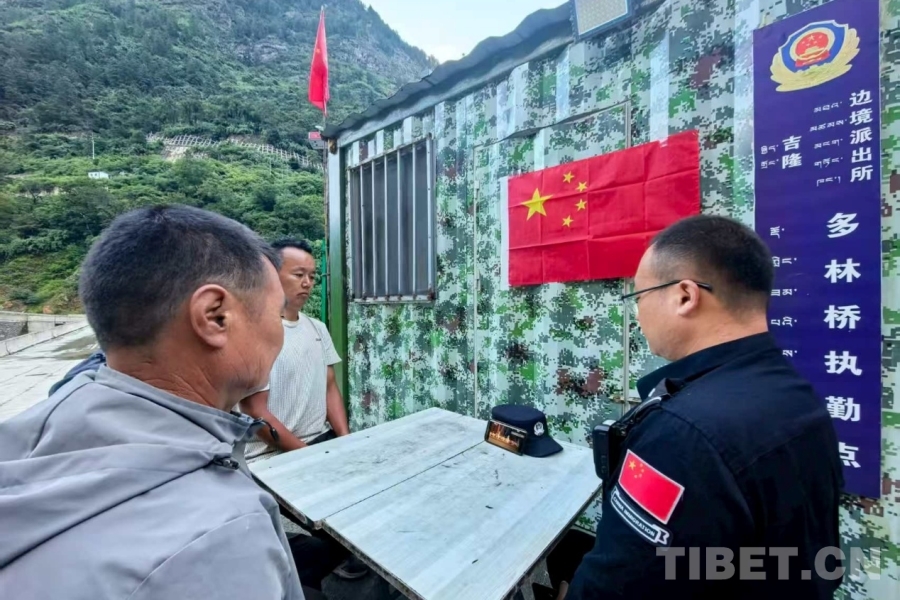 圖為日喀則邊境管理支隊(duì)吉隆邊境管理大隊(duì)吉隆邊境派出所多林橋執(zhí)勤點(diǎn)組織民警、護(hù)邊員和輔警觀看紀(jì)念中國(guó)人民抗日戰(zhàn)爭(zhēng)暨世界反法西斯戰(zhàn)爭(zhēng)勝利80周年大會(huì) 攝影:季韶龍