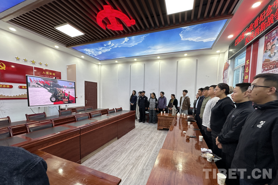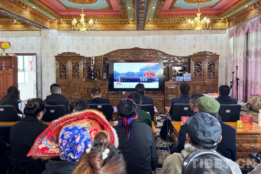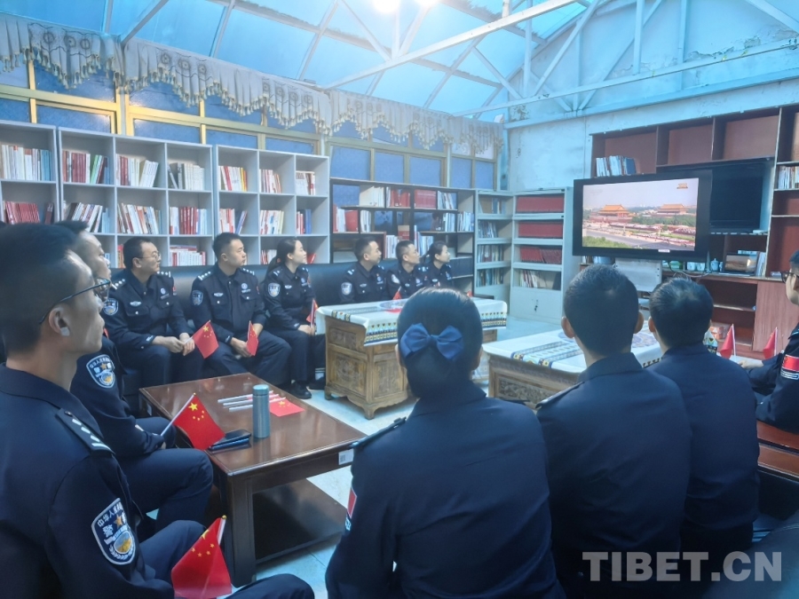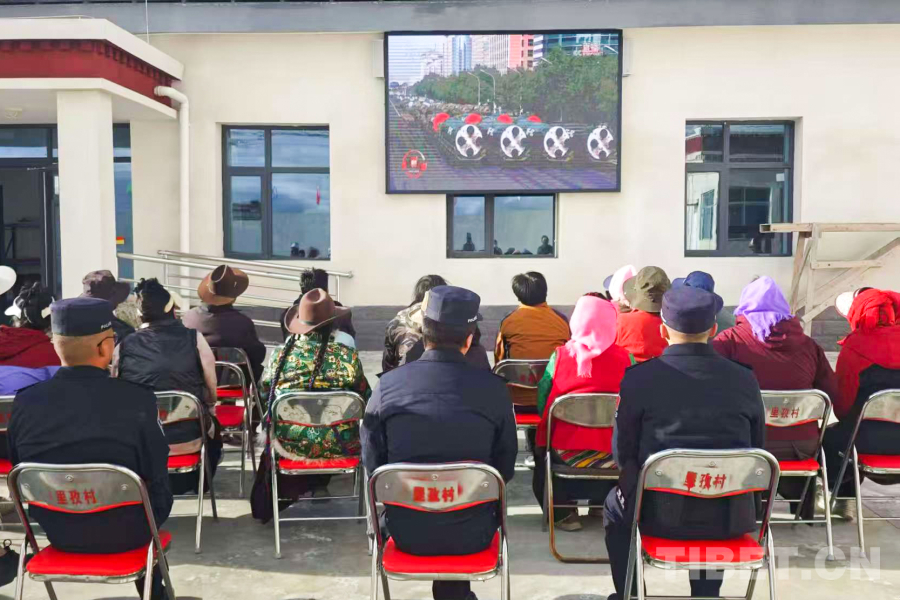 圖為日喀則邊境管理支隊(duì)仲巴邊境管理大隊(duì)帕羊邊境派出所與駐地人民政府聯(lián)合觀看紀(jì)念中國(guó)人民抗日戰(zhàn)爭(zhēng)暨世界反法西斯戰(zhàn)爭(zhēng)勝利80周年大會(huì) 攝影:次仁旺堆