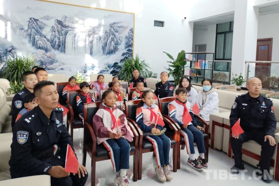 圖為日喀則邊境管理支隊(duì)康馬大隊(duì)涅如麥邊境派出所邀請(qǐng)學(xué)生一起觀看紀(jì)念中國(guó)人民抗日戰(zhàn)爭(zhēng)暨世界反法西斯戰(zhàn)爭(zhēng)勝利80周年大會(huì) 攝影:柳曉紅